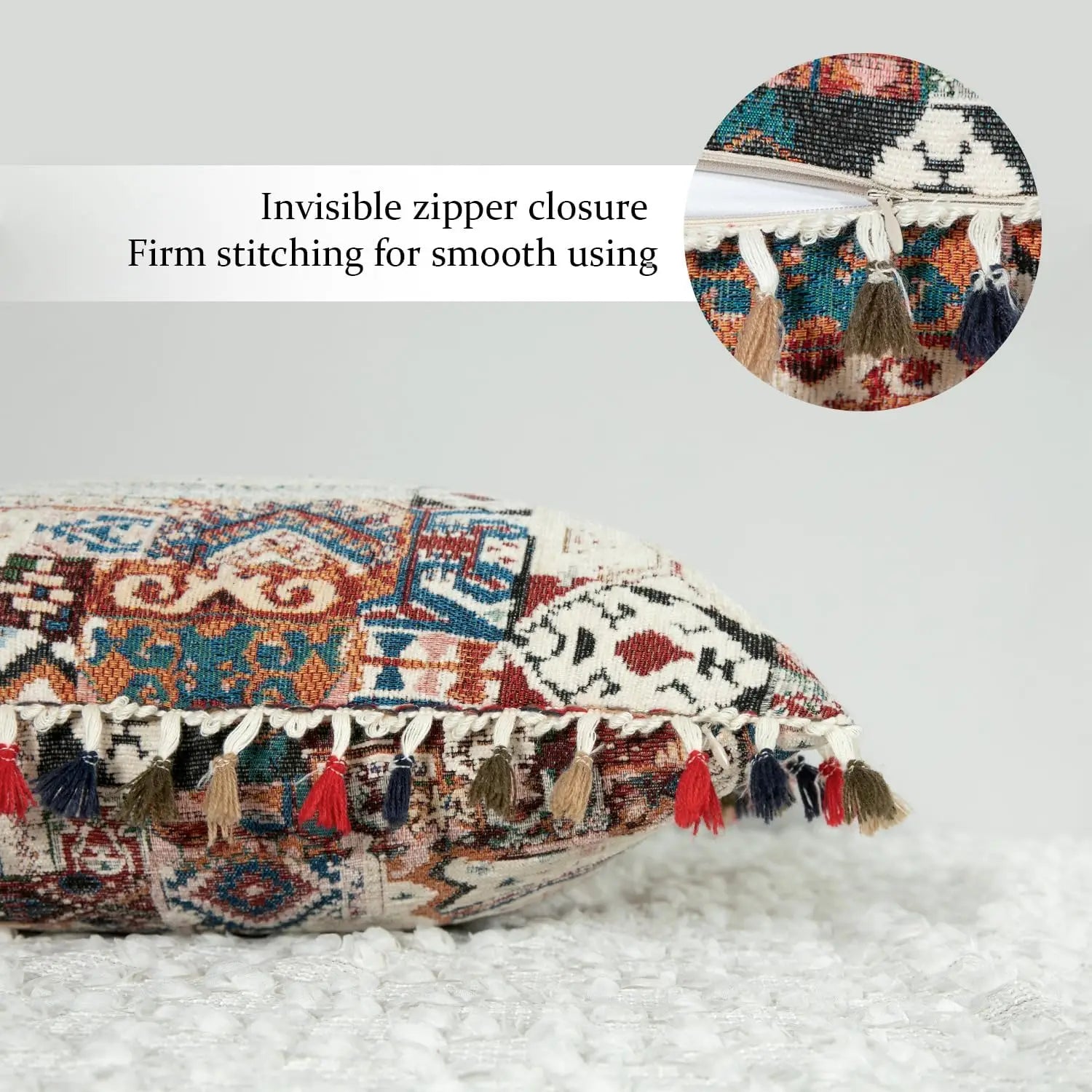 Embroidered Pillow Cover – Tassel Cushion for Home Decor