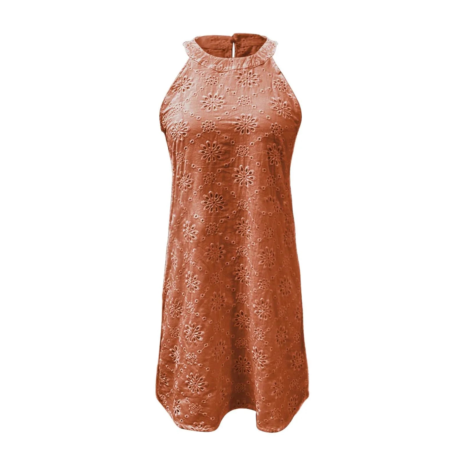 Keep it cute and casual with this junior women’s sleeveless A-line dress. Made from high-stretch polyester with a solid pattern and O-neckline, it’s knee-length and perfect for everyday wear.