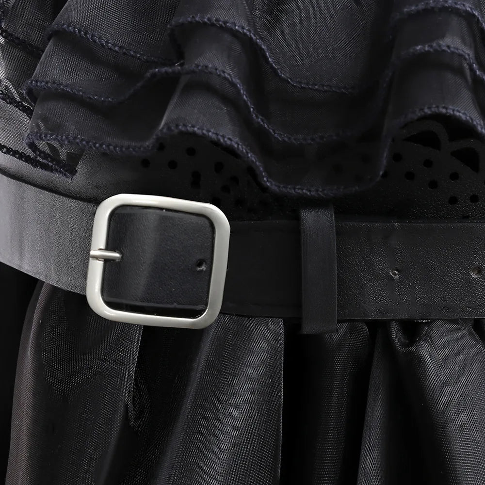 Halloween Hot American TV Series Black Wen. Girl Cosplay Horror Dress Set Easter Party Clothing +Fake hands + Sock Set 3-10Y
