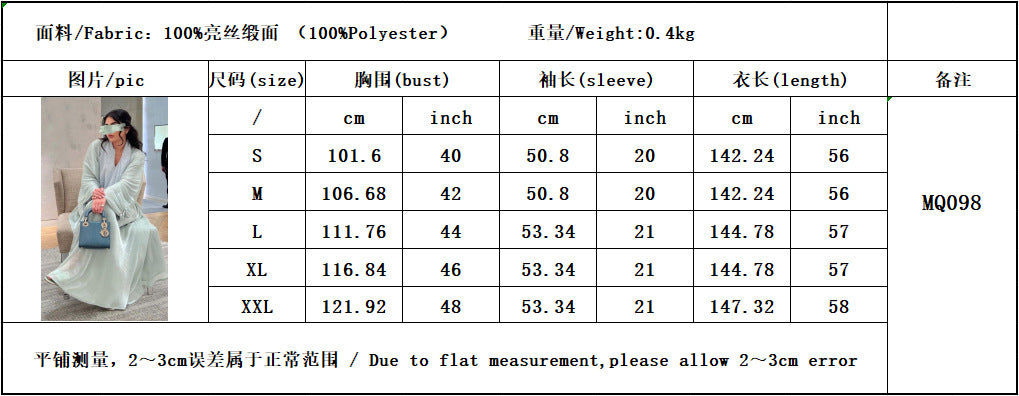Women’s Long Sleeve Silky Abaya – Elegant Maxi Kaftan