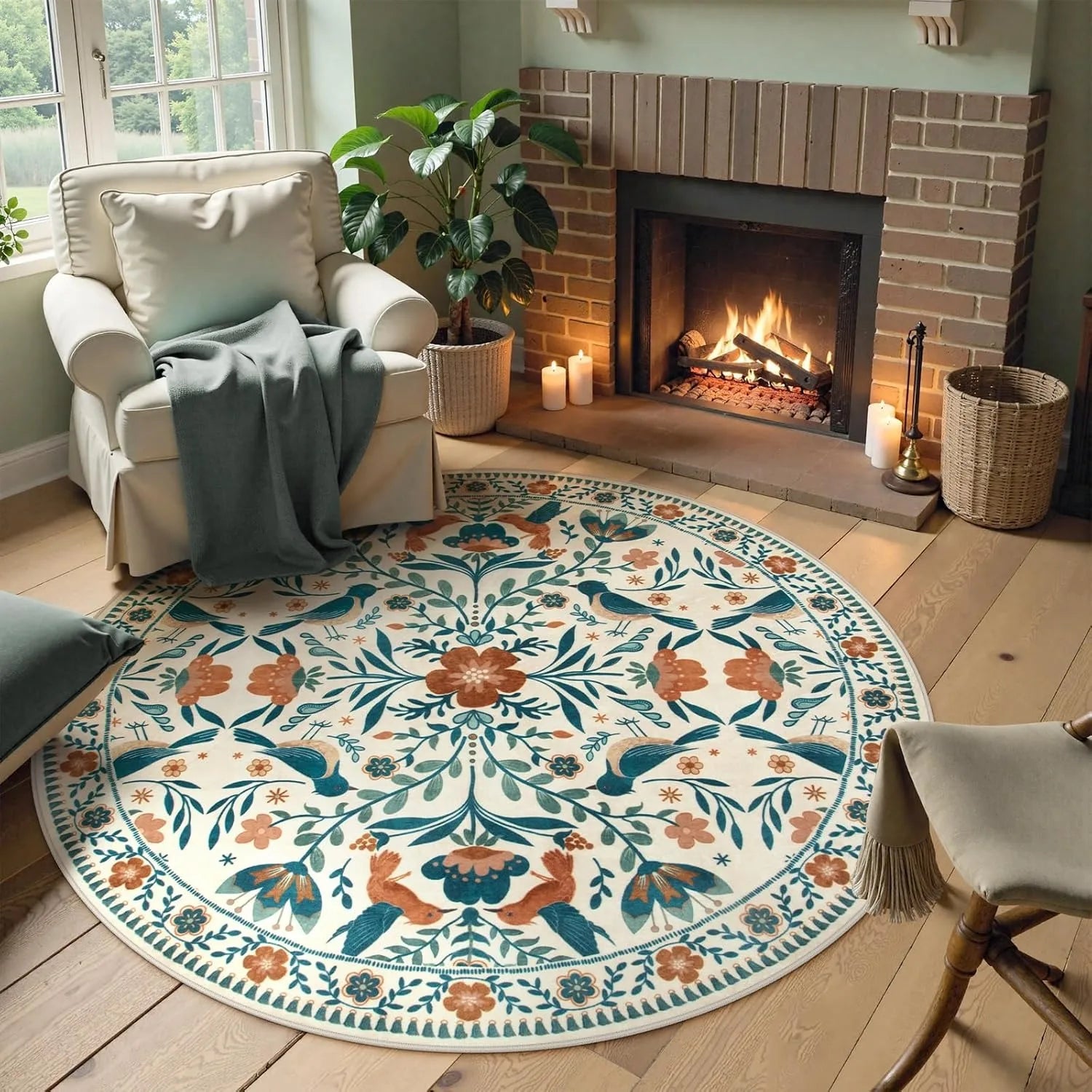 Enhance your space with this soft and stylish round rug, crafted from 100% polyester plush for a cozy and elegant feel. Designed with a timeless geometric pattern, it blends seamlessly with classic or modern interiors. The non-slip bottom ensures stability, while the washable fabric makes it practical for everyday use.
